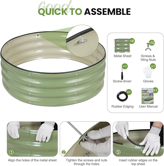 - 【Widely Used】 The outdoor raised planting beds measure 3ft (L) x 3ft (W) x 1ft (H), provide ample growing space for vegetables, flowers, fruits and other plants. The round design looks elegant and complement any outdoor setting - perfect for patios, courtyards, or lawns.