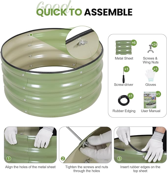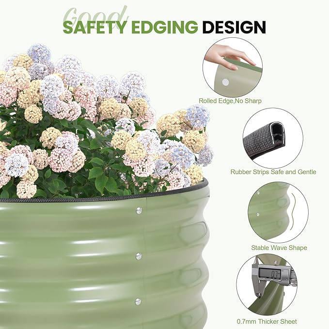 - 【Safe Edge & Rubber Trim】 The planter raised beds features a rolled top edge with a rubber strip to prevent injuries during setup and gardening. This thoughtful design enhances safety, especially for families with children and pets.