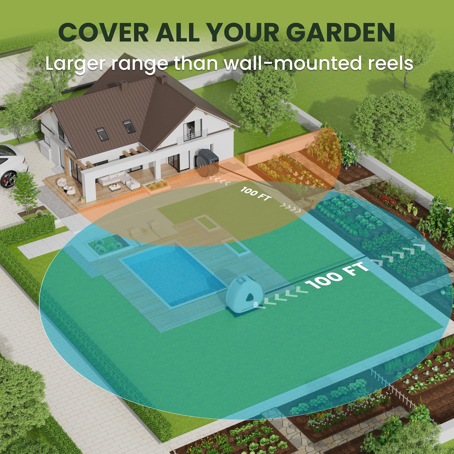 - ANY LENGTH LOCK: The Garden Hose Reel comes pre-assembled with a 100ft freeze-proof and burst-proof hose, featuring a locking mechanism that allows you to secure the hose at any desired length, ensuring every corner of your garden is easily reached!