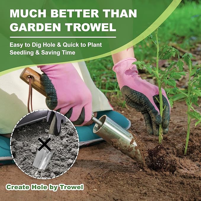 - 【Much Better Than Garden Trowel】A hand trowel makes the hole too wide and sometimes not deep enough, but this small bulb planter is perfect, just twist and turn once in the ground, and you will get an ideal depth hole to plant a bulb. Save a lot of digging time than regular garden shovels and make planting bulbs so much easier.