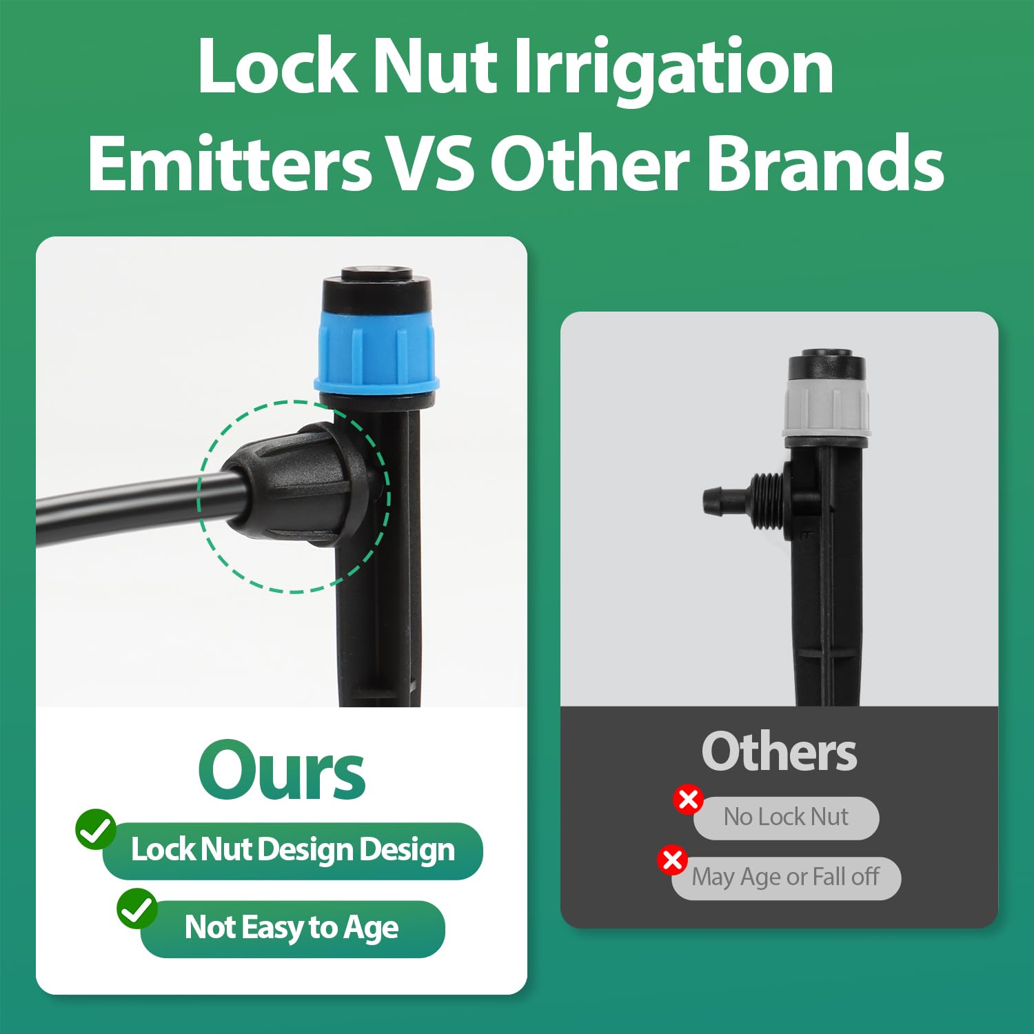- 【Set of 50 Adjustable Drip Emitters for 1/4" Drip Irrigation Tubing】50 pieces drip irrigation fan shape emitters, specifically designed for 1/4" drip irrigation tubing. Each 1/4" drip irrigation emitters features an adjustable 360-degree water flow dripper mounted on a 5.5" arrow stake, making it the perfect choice for efficient irrigation across your garden. With capabilities to spray water across a diameter of 0 to 10 feet, it’s an essential addition for anyone looking to optimize their irrigation system