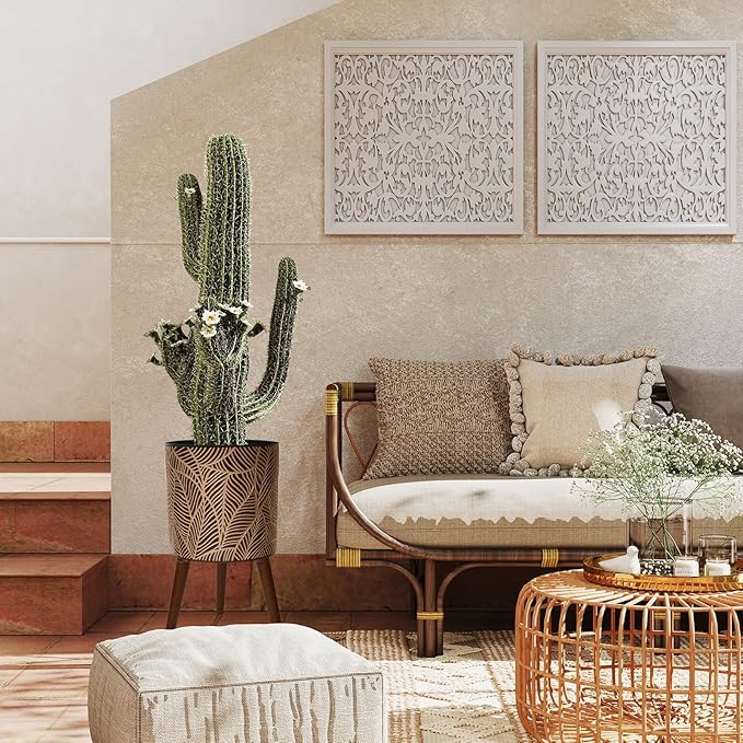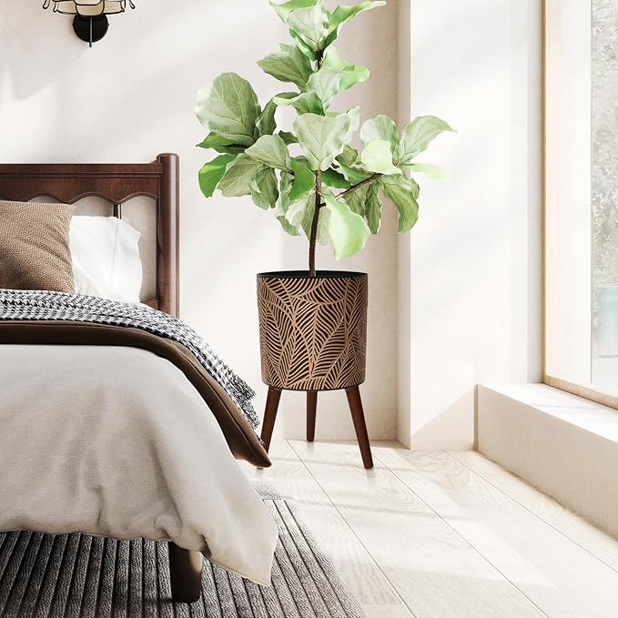 - Durable and Stylish Stand:Includes a sturdy wooden plant stand that adds both height and stability—perfect for showcasing tall plants, indoor greenery, or trailing vines in your favorite planter.