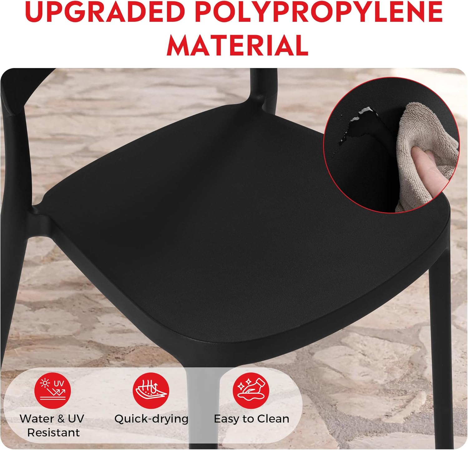 5-Piece Outdoor Dining Set, HDPE Patio Square Bistro Table and Stackable Chairs Sets for 4, Patio Furniture All Weather for Backyard Poolside, Black