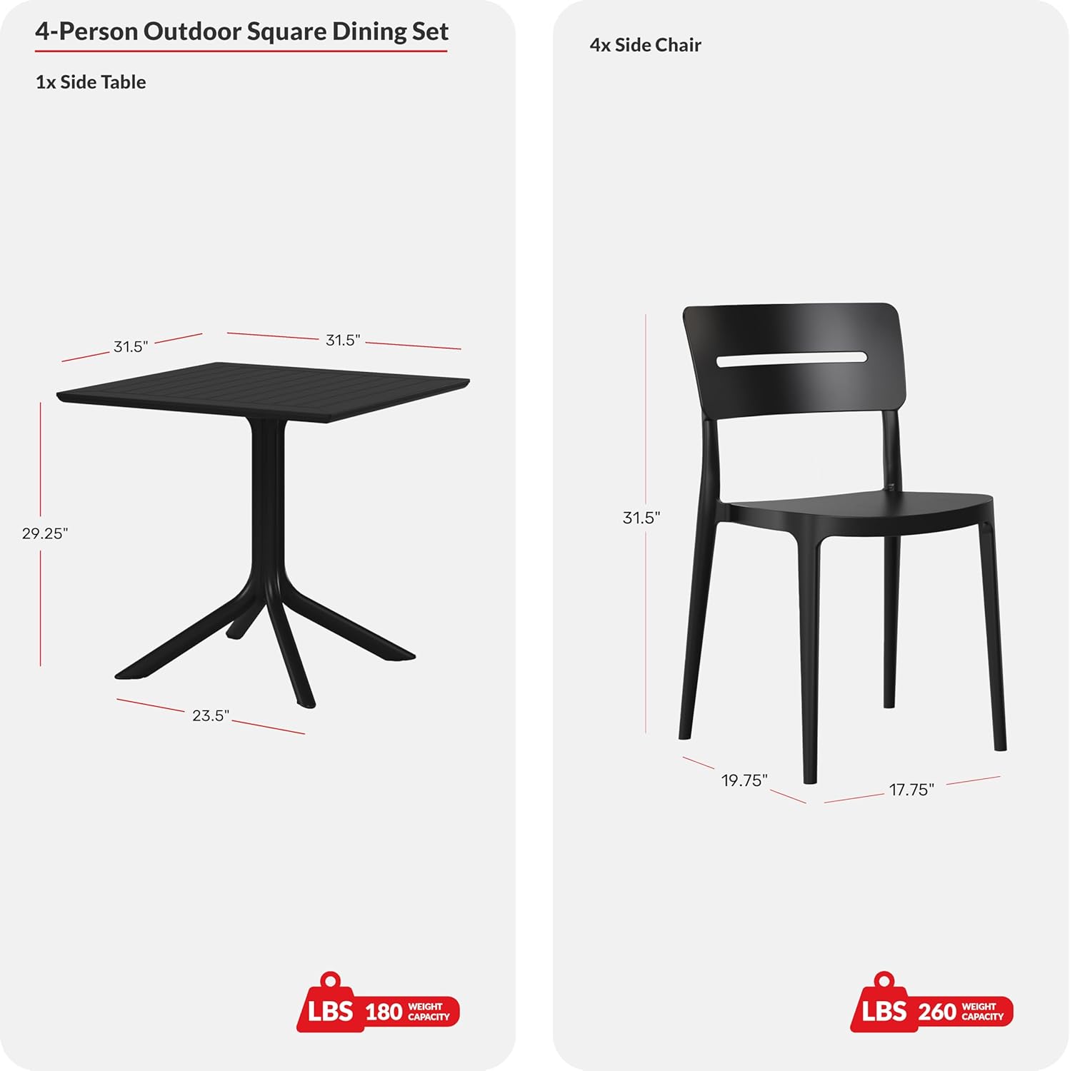 5-Piece Outdoor Dining Set, HDPE Patio Square Bistro Table and Stackable Chairs Sets for 4, Patio Furniture All Weather for Backyard Poolside, White