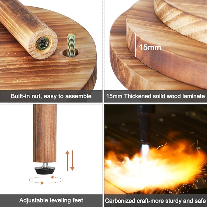 - 【Effortless Assembly & Premium Build:】Features embedded nuts and pre-drilled cylindrical legs for easy assembly within 10 minutes. The tiered plant stand uses Pine wood ,after high temperature carbonization, reduce the moisture in the wood, making the overall structure more durable,It is also equipped with non-slip adjustable foot pads to stabilize uneven floors. Ideal as a high low flower stand for balconies or living rooms
