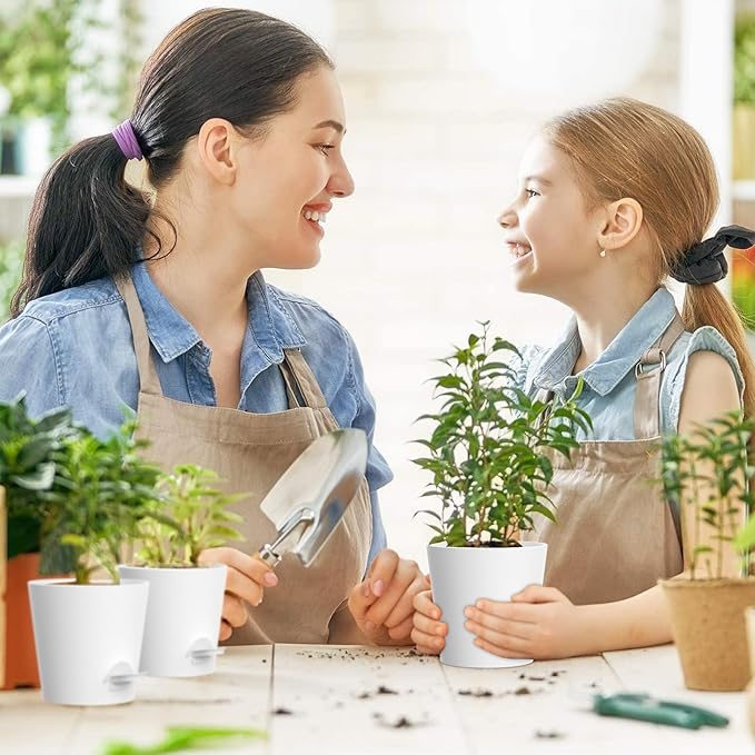 - 【Assorted Sizes & DIY Friendly】6 sizes available (4", 5", 5.5", 6", 6.5"and 7"). These flower pots are very suitable for growing cacti, succulents, aloe vera, basil, flowering plants, air plants, and snake plants. You can use your imagination to color the self watering planters for indoor plants or DIY to make your unique own one with your kids