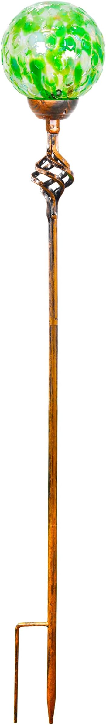 Garden Solar Lights, Decorative LED Honeycomb Glass Ball Garden Stake, Glass and Metal Outdoor Decoration, 4 x 31 Inch (Green)
