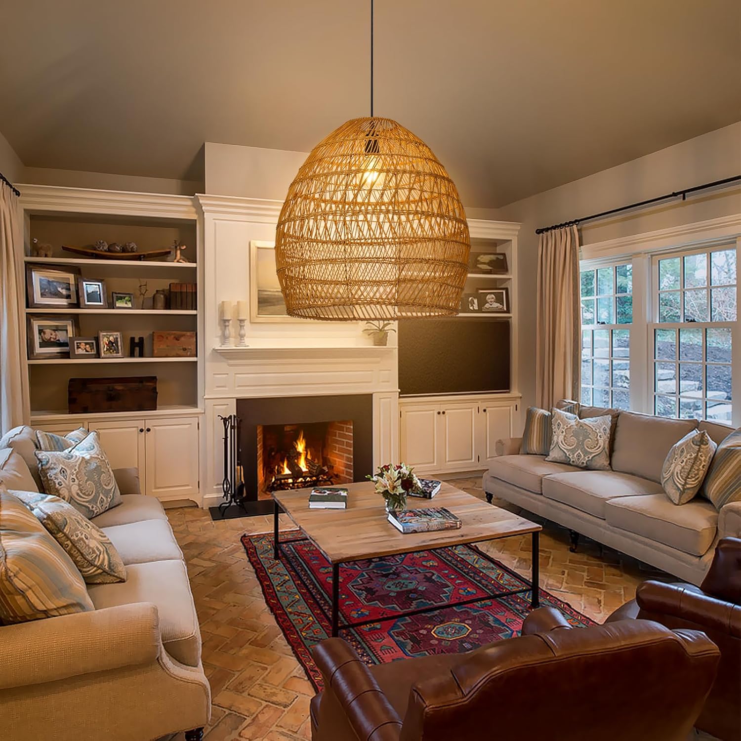 - 【Unique Design】Rustic retro bohemian coast design,woven pendant light handcrafted from natural rattan,this piece blends beauty and artistry,seamlessly fitting into your home.the coastal chandelier adds a touch of elegance,making it a standout addition to any room.