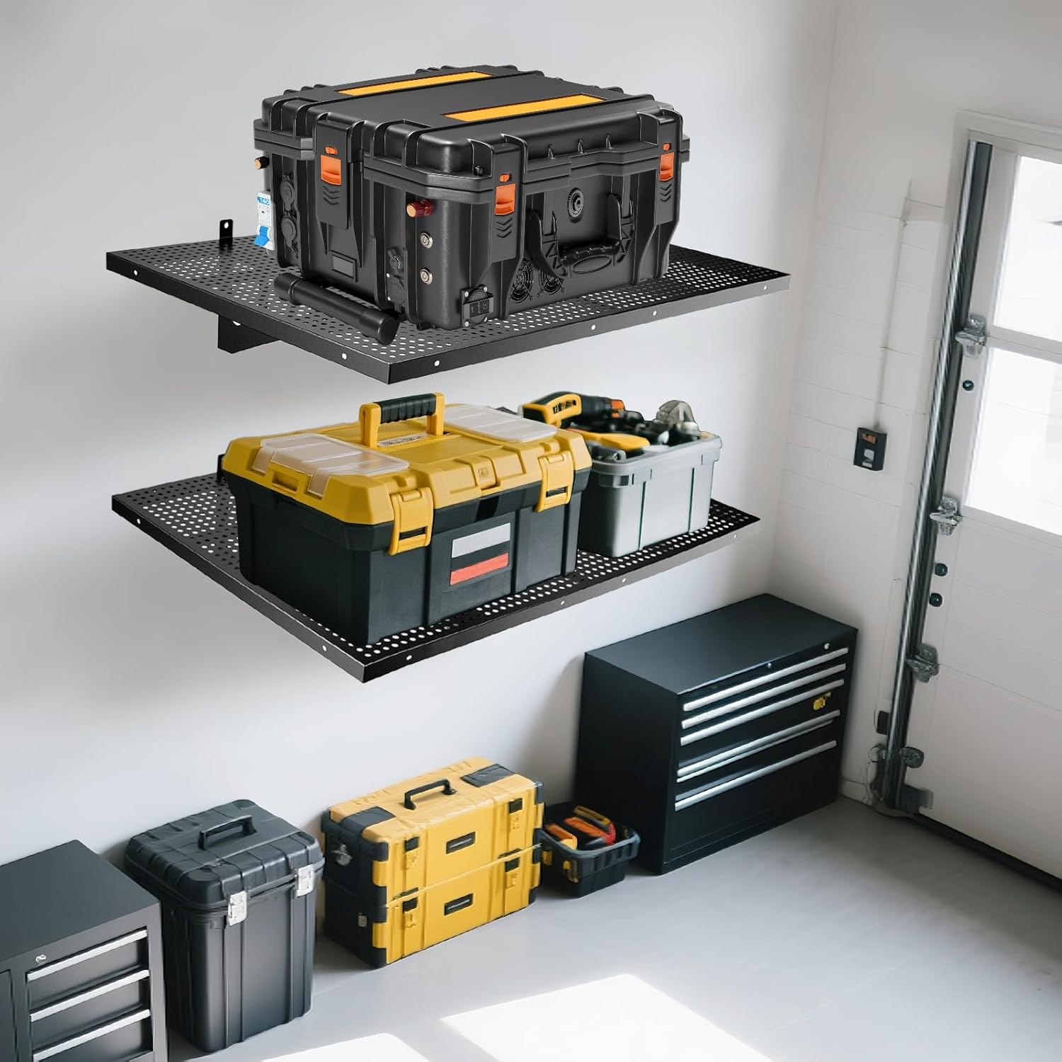 - 【HEAVY DUTY CONSTRUCTION】Garage wall shelving takes its cues from architectural frame construction, with a 2x3 ft individual bracket load capacity of 280 lbs. and a total of 560 lbs. 2 shelves which makes it easy to store most of the items in your garage.