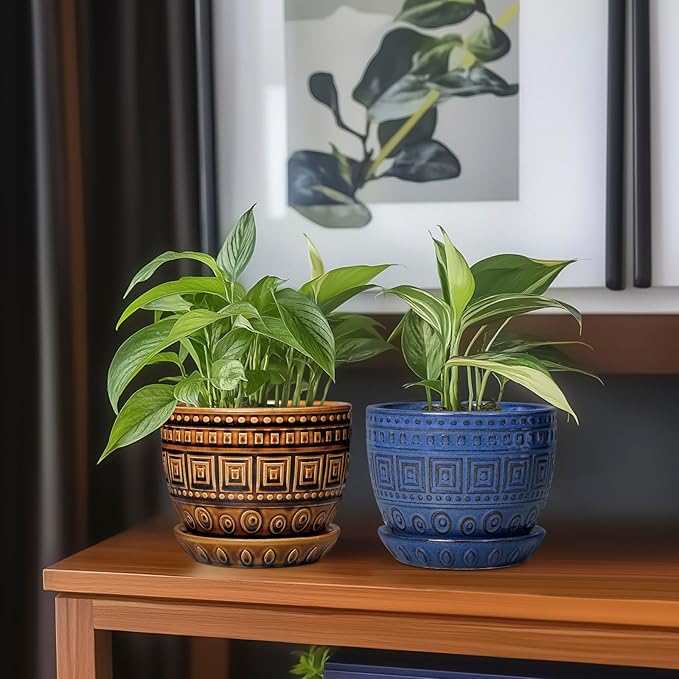 - Ideal Size of Indoor Plant Pot: Each ceramic planter is 5.5 D x 4.7 H, which can provide enough space for your plants to thrive. One package includes brown planter, ceramic tray and mesh