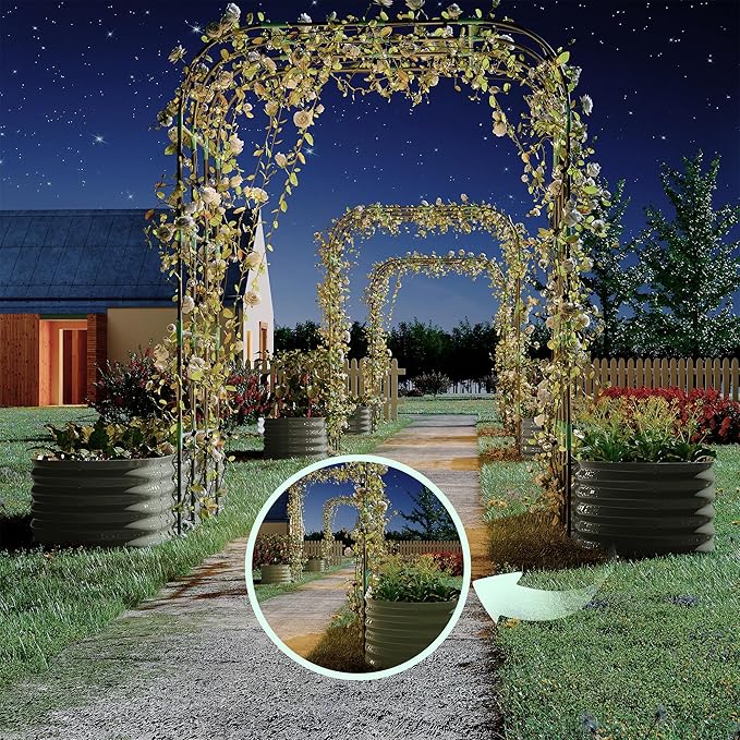 - 【Space-Saving Vertical Raised Garden Bed】 Maximize your garden’s potential with this galvanized raised garden bed featuring dual planter raised beds and a 96" arched trellis. Perfect for raised beds for gardening in small yards, patios, or greenhouses—grow more vines, flowers, and herbs while saving ground space.