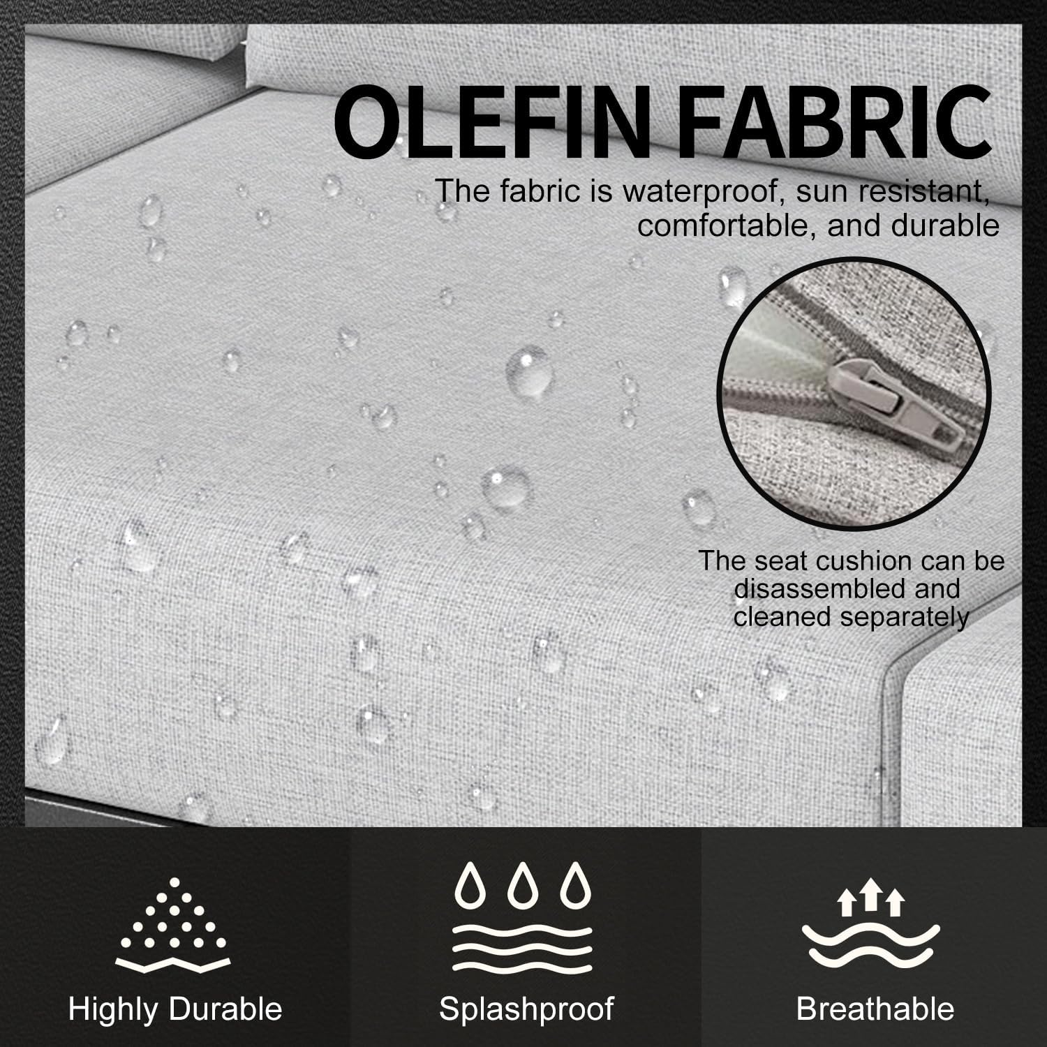 - 【Premium Olefin Fabric Cushions】 Designed for superior comfort, the cushions feature high-quality Olefin fabric that is soft, breathable, and moisture-resistant. Its fade-proof and stain-resistant properties make maintenance effortless, ensuring lasting beauty and comfort in your outdoor space.