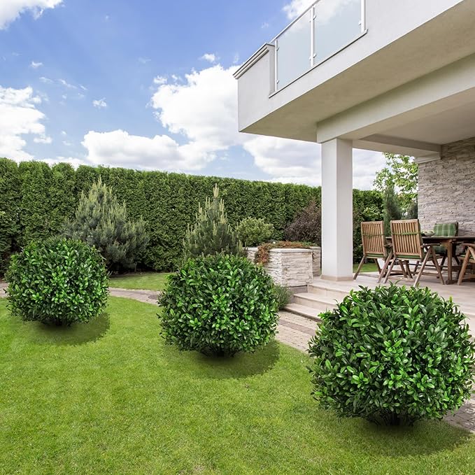 - 【Quick & Effortless Setup】 Each artificial topiary for outdoors includes a weighted base for easy installation—no tools required. Place these fake bushes in planters, soil, or decorative pots instantly. The wind-resistant design makes them ideal for outdoor faux trees UV resistant on balconies, pathways, or entryways