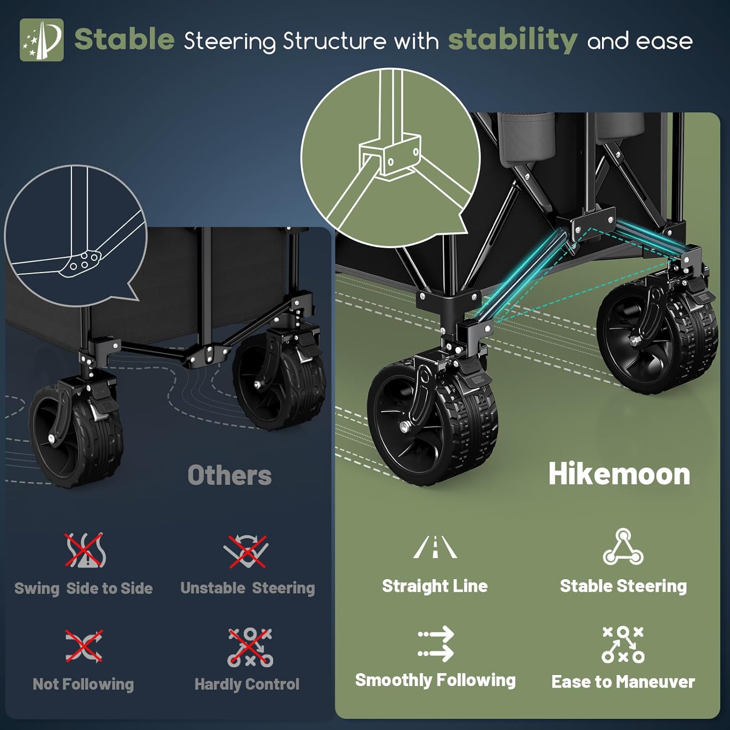 - ใ๐๐ซ๐จ๐๐ฎ๐๐ญ ๐๐ข๐ณ๐, ๐๐ข๐๐ ๐๐จ๐๐ค๐๐ญ ๐๐ง๐ ๐๐ฎ๐ฉ ๐๐จ๐ฅ๐๐๐ซ๐ฌใ: Hikemoon collapsible wagon cart ๐ฎ๐ง๐๐จ๐ฅ๐๐๐ ๐ฌ๐ข๐ณ๐: 46.06"D x 22.64"W x 24.17"H, ๐๐จ๐ฅ๐๐๐ ๐ฌ๐ข๐ณ๐: 12.59"D x 8.98"W x 24.17"H, ๐ฐ๐ก๐๐๐ฅ ๐ฌ๐ข๐ณ๐: 7" x 4", ๐๐ฒ๐ถ๐ด๐ต๐ ๐ผ๐ณ ๐๐ฎ๐ป๐ฑ๐น๐ฒ ๐๐ผ ๐๐ฟ๐ผ๐๐ป๐ฑ: 42.91". Features one Oxford side pocket and two cup holders for convenient storage of drinks and personal items.