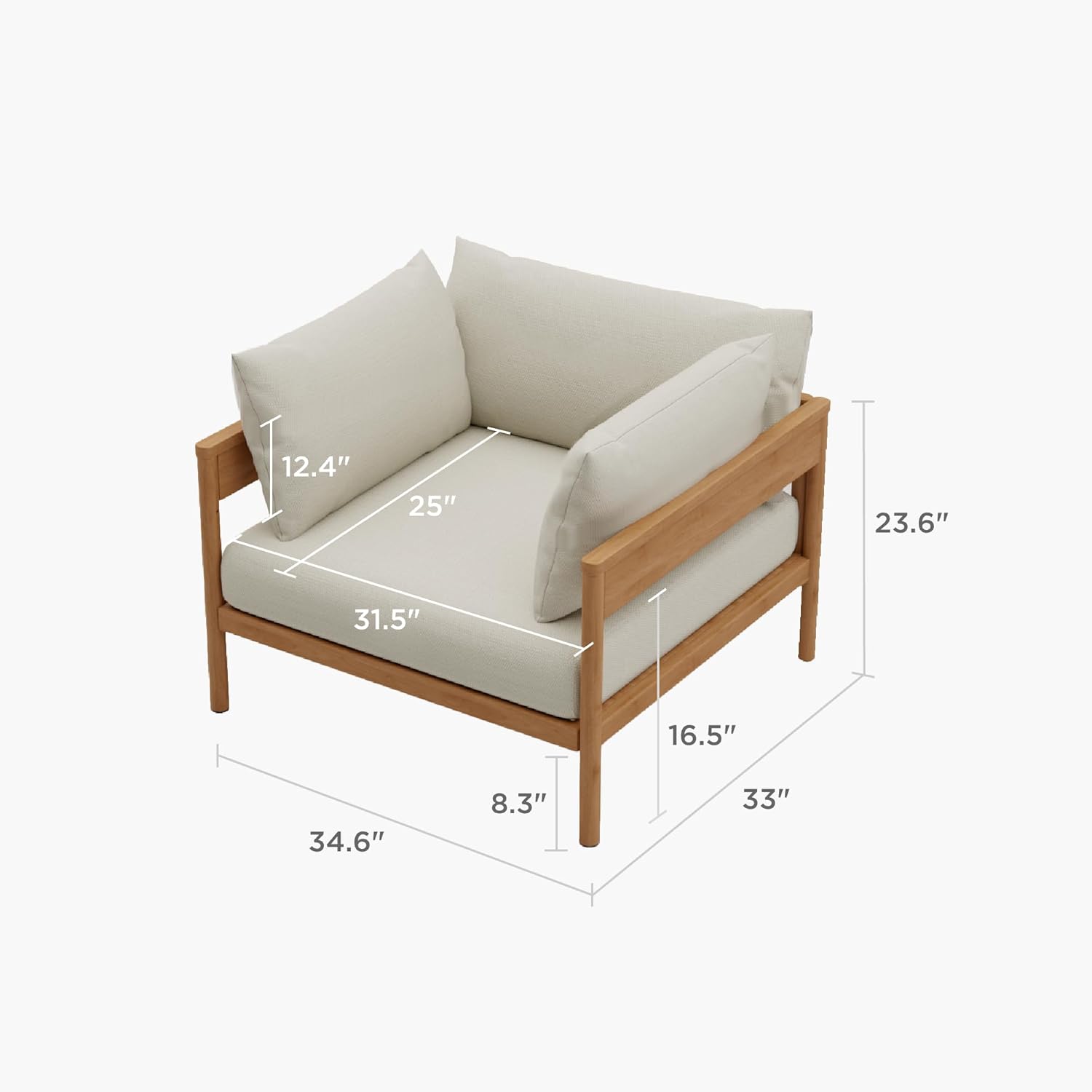 - Premium Construction: The sturdy aluminum frame with teak wood-toned finish and stainless steel hardware ensures these outdoor furniture pieces will maintain their structural integrity season after season.