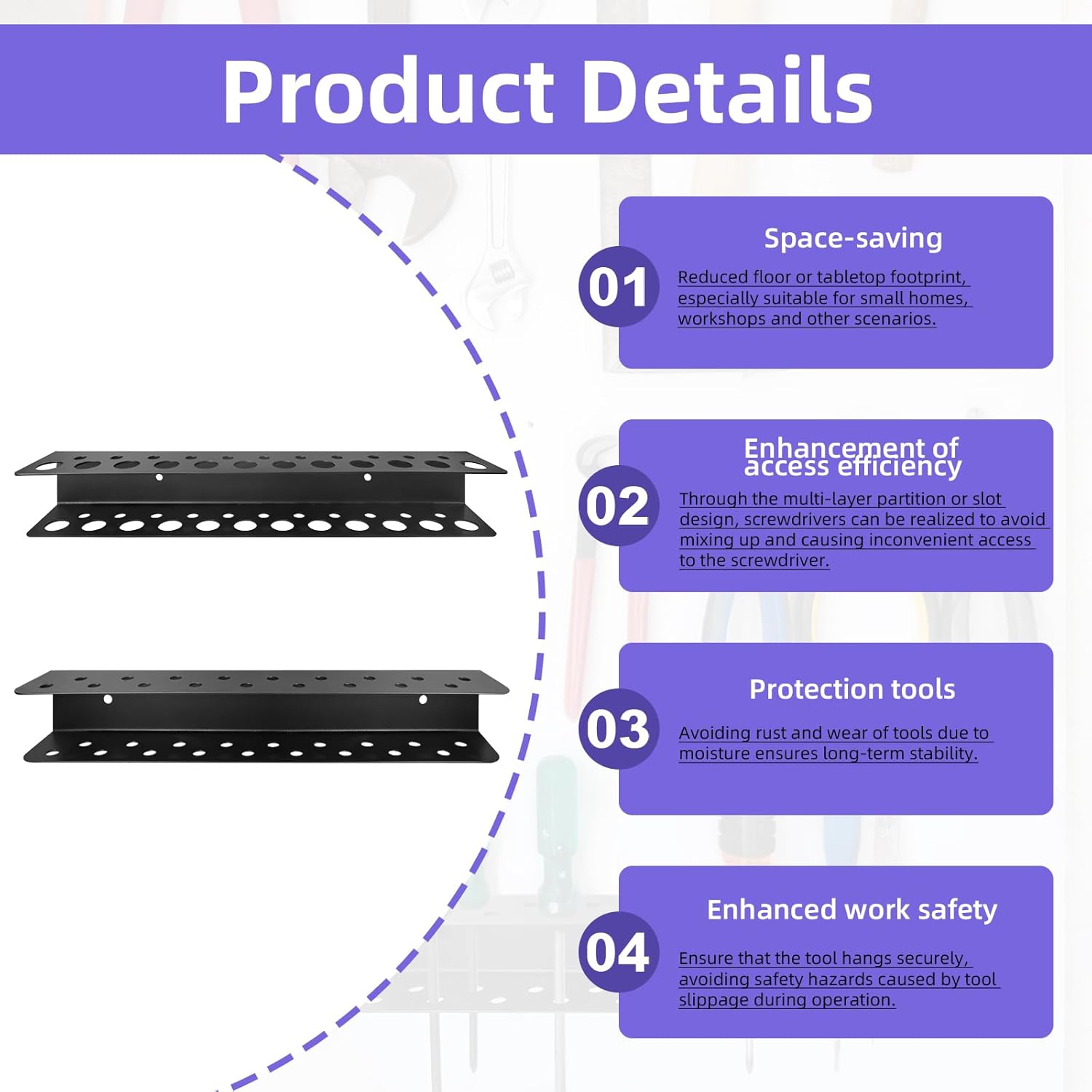 2 Pack Screwdriver Organizer Wall Mounted – Heavy Duty Rustproof Tool Organizer with Durable Design, Space-Saving Storage for Garage, Workshop, Home Workbench