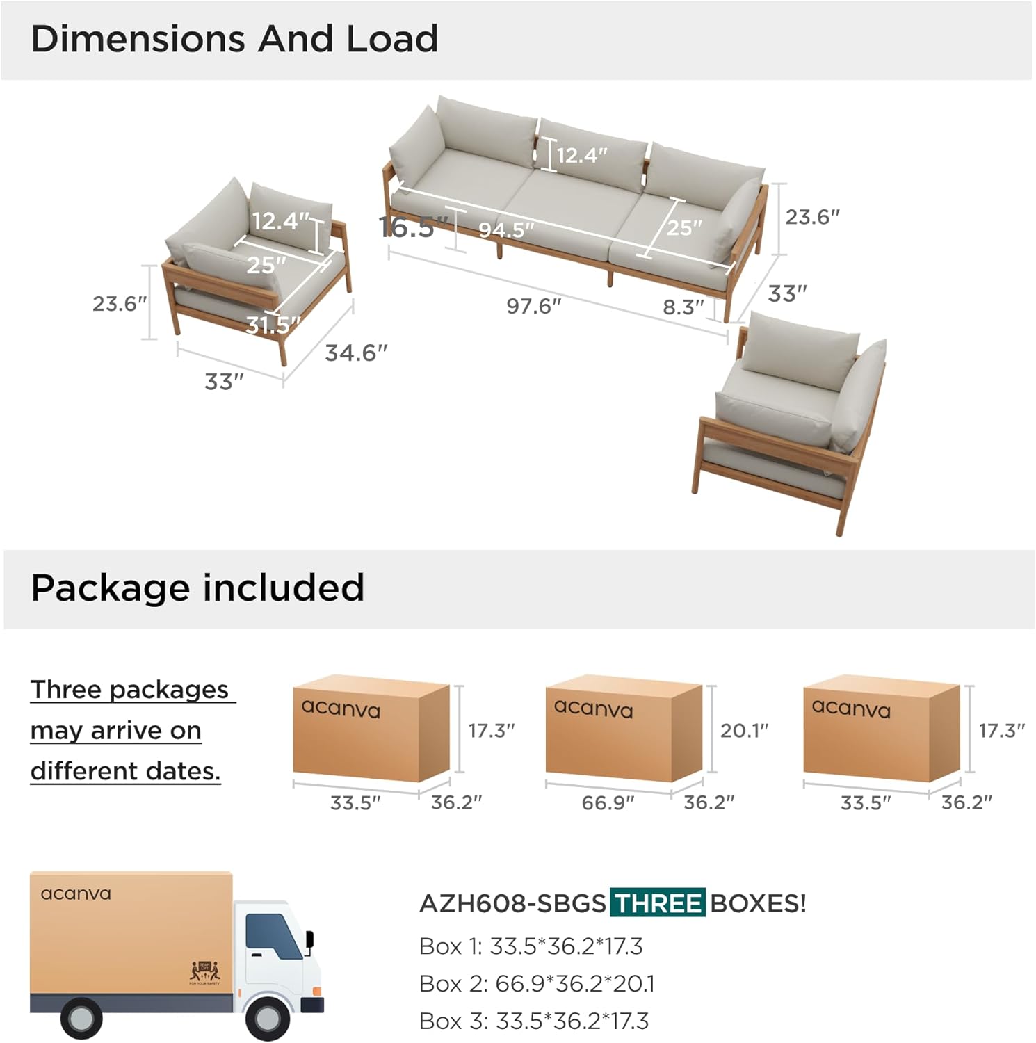 Acanva Modern Outdoor Patio Furniture Set, All-Weather Aluminium Conversation Sectional Sofa with Thick Cushions for Backyard, Garden, Porch, Couch + 2 x Armchairs, Beige
