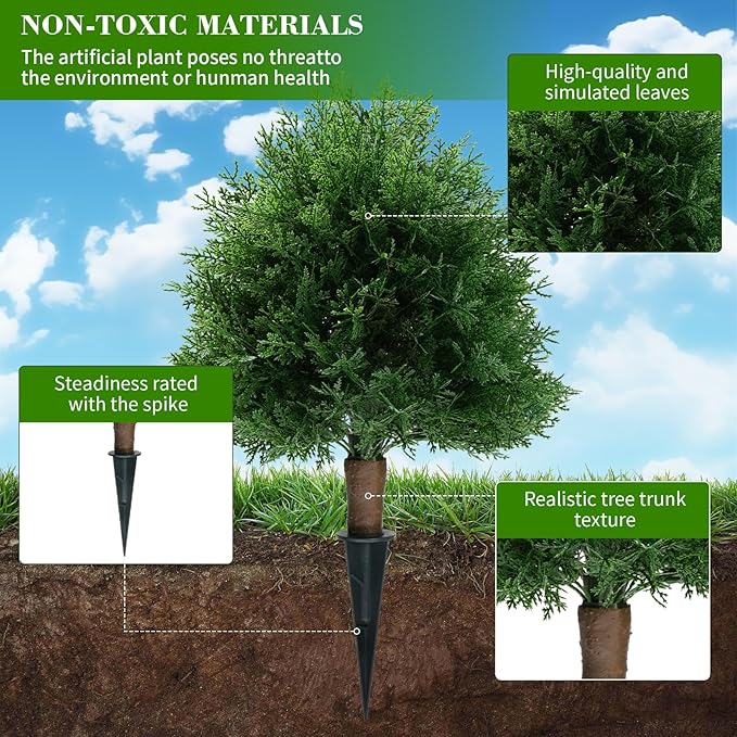 - Easy Setup with Reinforced Ground Spike: Designed with a convenient ground spike, this UV-resistant artificial cypress topiary is incredibly easy to set up. Simply place it in soil, a planter, or a decorative pot to instantly enhance your space with greenery that looks fresh year-round.
