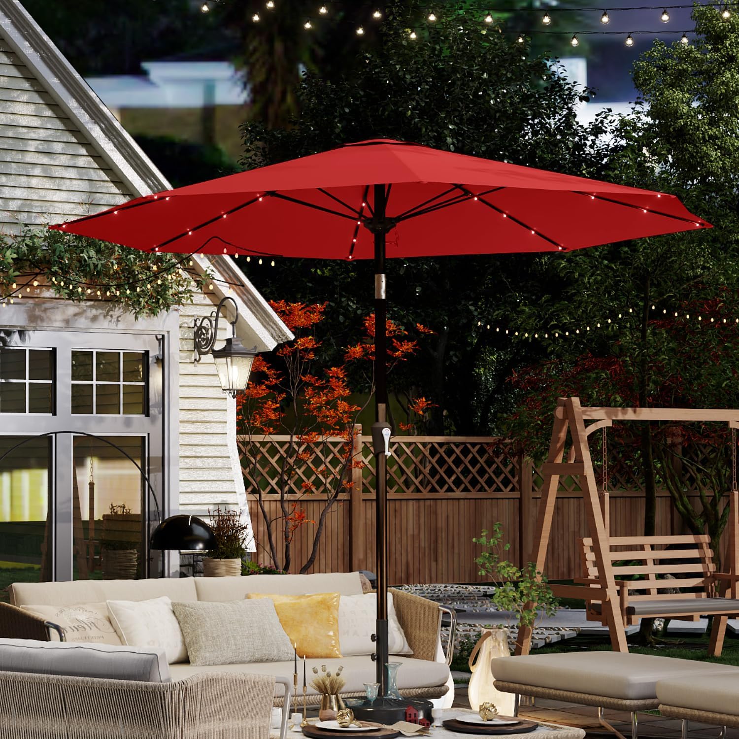 - 32 Solar-Powered LED Lights: Illuminate your evenings with 32 built-in LED lights powered by a high-efficiency solar panel, without the need for external power sources, providing up to 8 hours of ambient lighting.
