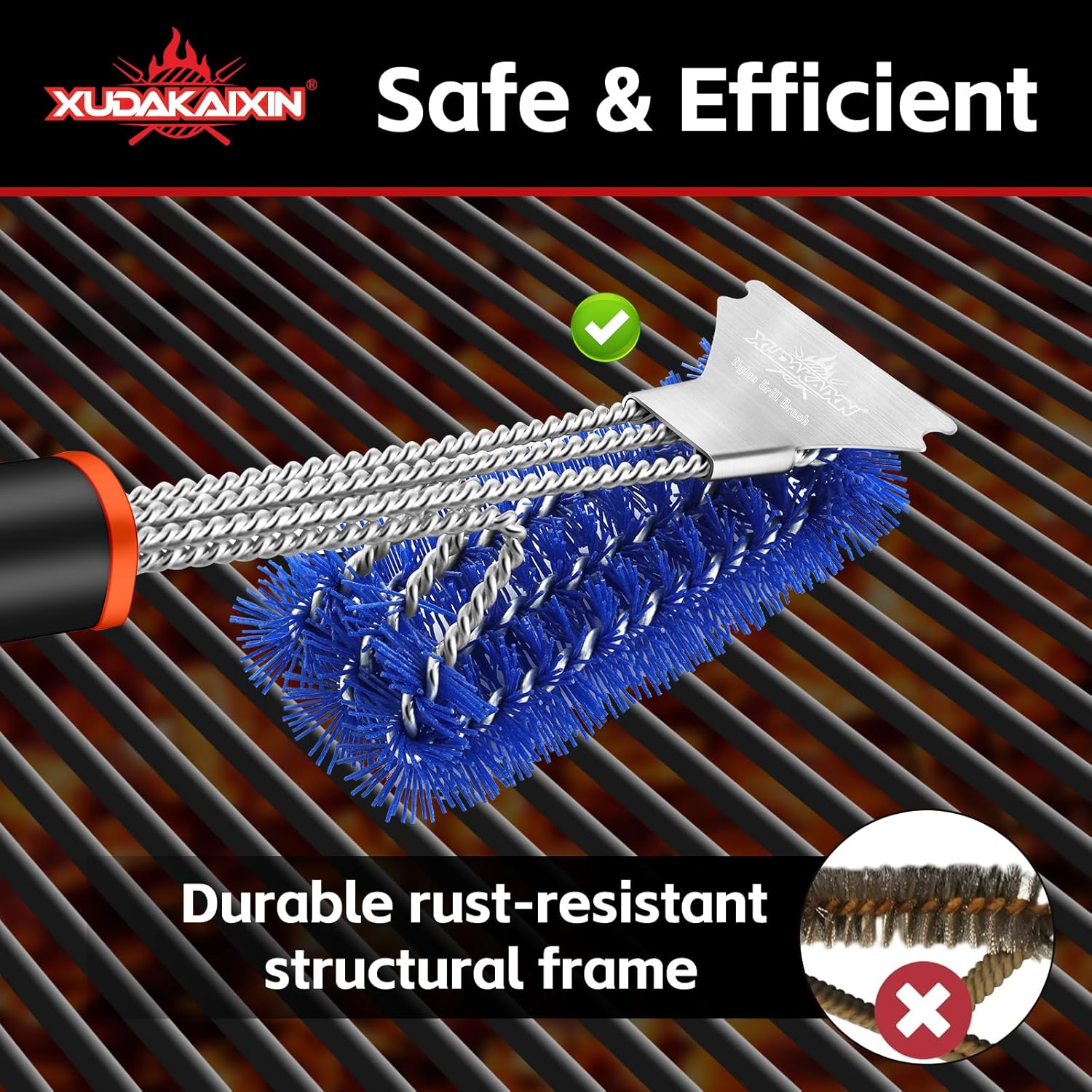 - 【Durable Nylon Bristles Protect Grates】Designed for safe and effective cleaning, this BBQ grill brush has durable, heatproof nylon bristles that won’t scratch your grill grates. A great choice for keeping your grill in pristine condition with regular upkeep