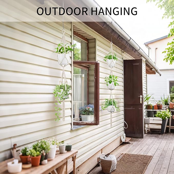 - Handmade for Durability: Crafted from natural cotton rope, this hanging basket is meticulously handwoven for long-lasting strength and support; Fits 4 to 8 inches pots and supports up to 22 lbs, keeping your plants safely suspended without tilting