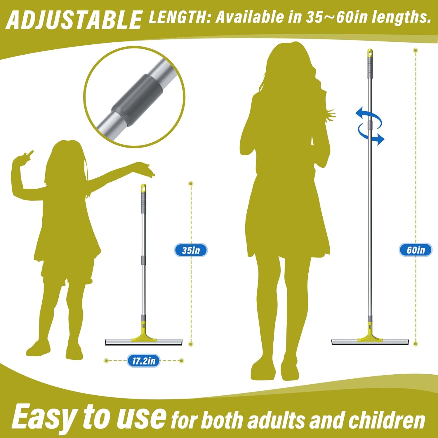 60'' Floor Squeegee Heavy Duty Scrubber with Telescopic Pole, Long Handle Squeegee for Floor with Rubber Blade, Broom for Concrete Floor Shower Tile Glass Pool Garage -17in