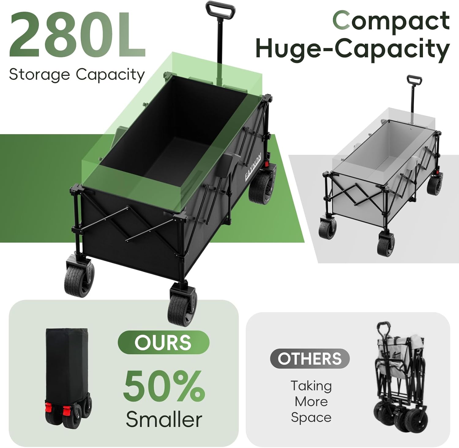 - ใ๐น๐ฎ๐ฟ๐ด๐ฒ ๐ฐ๐ฎ๐ฝ๐ฎ๐ฐ๐ถ๐๐ใ:๐๐๐ฌ๐ก๐ข๐ก Collapsible Wagon supports up to ๐ฑ๐ฌ๐ฌ ๐น๐ฏ๐ with ๐๐๐๐/๐.๐๐ ๐ฐ๐.๐ณ๐ of storage, offering ๐ฎ๐ฌ๐ฌ% more space than standard wagonsโperfect for carrying all your beach gear, camping equipment, or shopping items