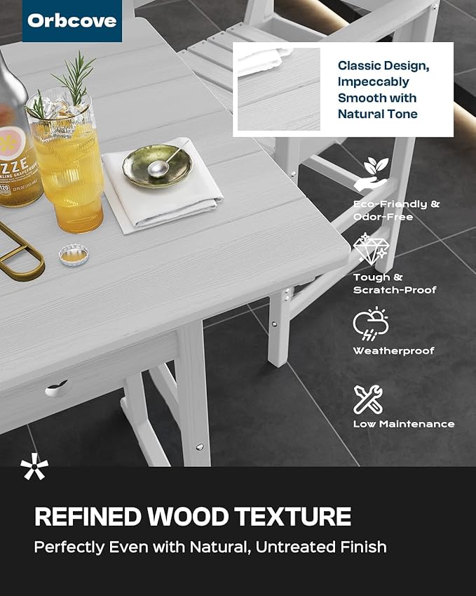 - All-Weather, Durable HDPE Material: Made from high-density polyethylene (HDPE), this table is waterproof, UV-resistant, and built to withstand rain, sun, and seasonal temperature changes without cracking, fading, or rotting. It’s made for outdoor use all year long.