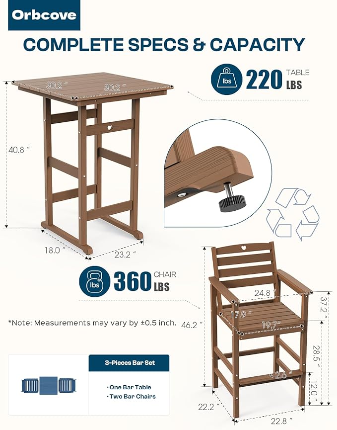 - All-Weather, Durable HDPE Material: Made from high-density polyethylene (HDPE), this table is waterproof, UV-resistant, and built to withstand rain, sun, and seasonal temperature changes without cracking, fading, or rotting. It’s made for outdoor use all year long.