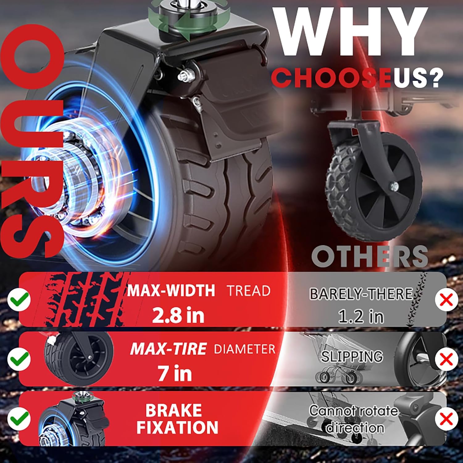 - 【Larger Rotatable Detachable Wheels & Flexible Handle】: The collapsible wagon equipped with more larger 360° rotatable and non-slip surface wheels, and a brake with locking damping that allow easy release and secure fixation. Make it more stable, smooth and worry-free control in any environment. Easily traverse any terrain. And come with detachable design, easy to clean and care the wheels. The handle is not only telescopic but also adjustable, can extend from 21.26 inches to 29.52 inches in length and the angle can be adjusted as needed. And it can be secured to the frame without worrying about dropping. Pushing and pulling becomes very convenient.