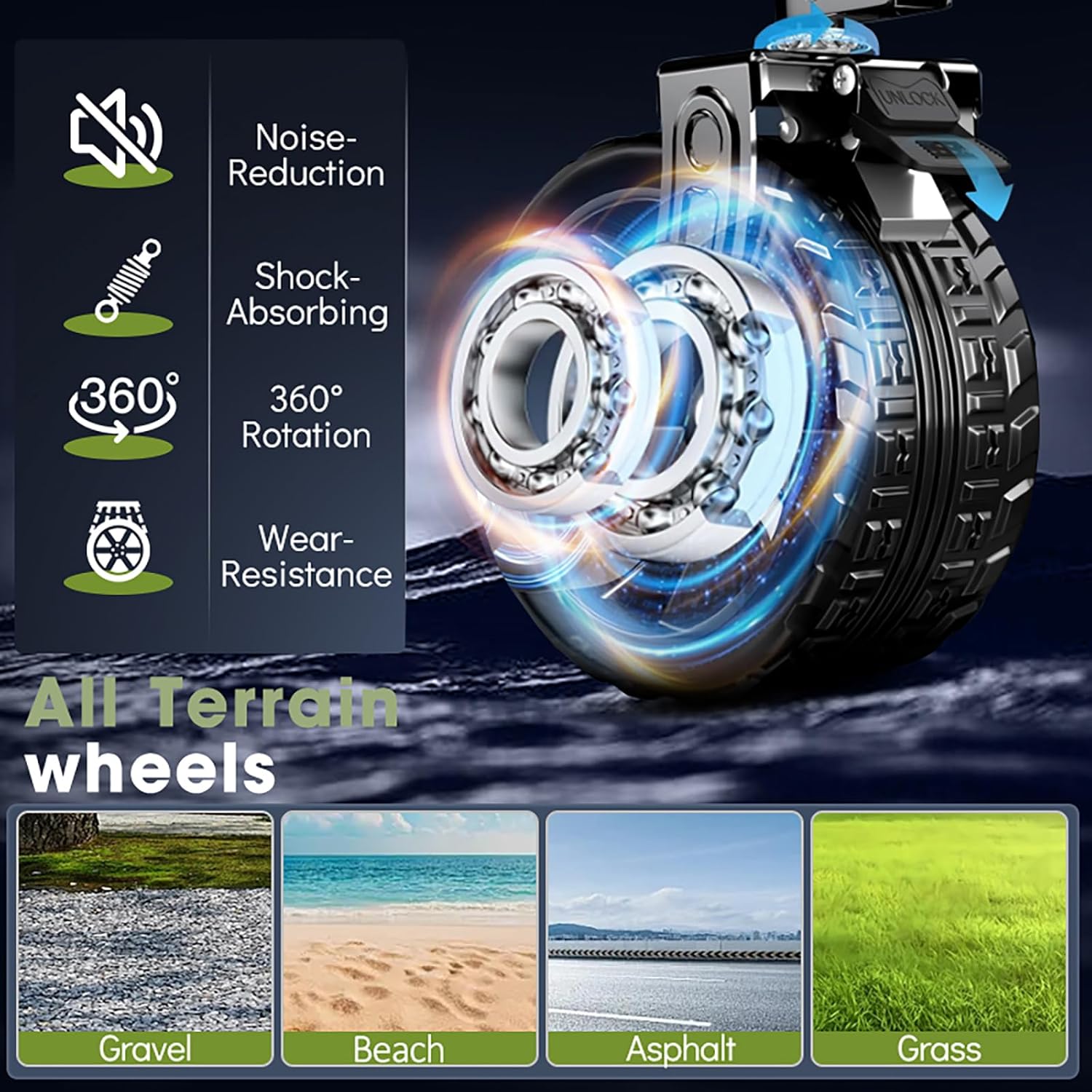 - 【Larger and Wider All-Terrain Big Wheels】: The collapsible wagon equipped with more larger & wider 360° rotatable and non-slip surface wheels, and a brake with locking damping that allow easy release and secure fixation. Make it more stable, smooth and worry-free control in any environment, even on grass, sand, dirt and bumps. And come with detachable design, easy to clean and care the wheels