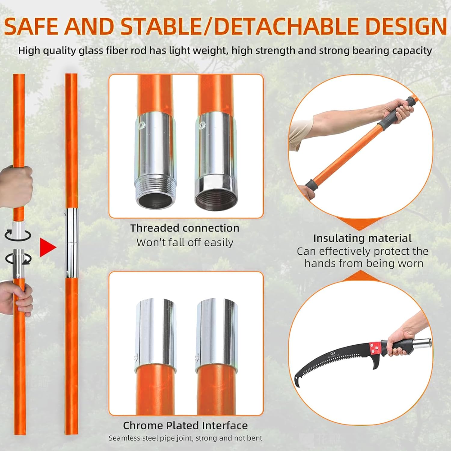 - Multi-Functional Trimming Tool: The detachable design allows easy assembly with 8 reinforced fiberglass sections. You can adjust the length from 7.8 feet to 27 feet depending on the task at hand. It can also be used as a handheld saw for trimming lower shrubs and branches.