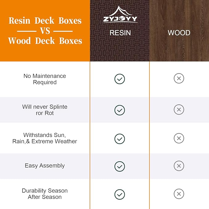 - Durable Resin Construction: Made from high-quality resin, this outdoor storage box is built to last. It’s weather-resistant, waterproof, and UV-protected, making it ideal for use as a cushion storage box for patio, deck storage box, or outdoor storage bin. Perfect for all your outdoor tool storage and furniture needs.