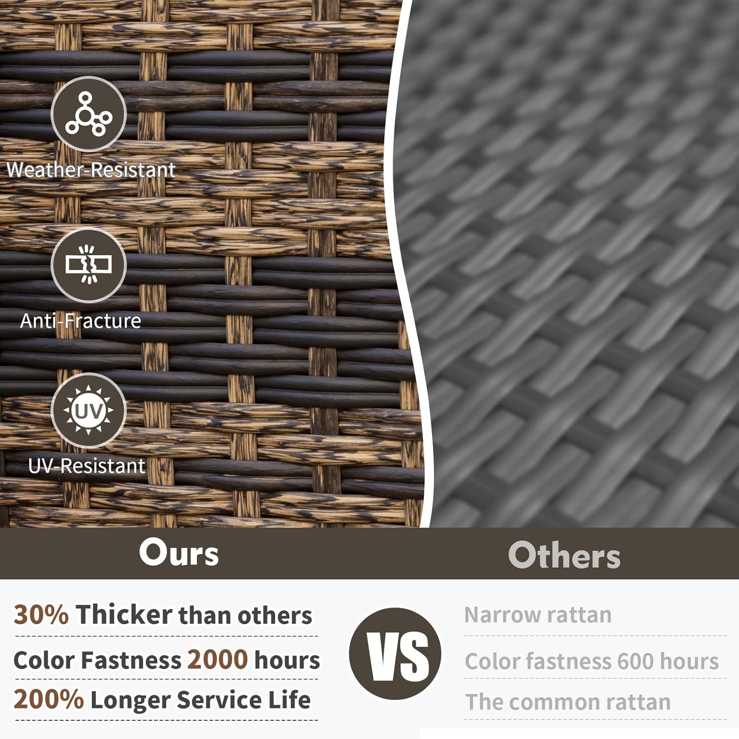 - Sturdy Wicker Furniture: The 3 Pieces Outdoor Swivel Rocker Chairs set is crafted from all-weather hand-woven PE wicker, which is durable and not easy to fade.Each swivel chair is supported by a robust powder-coated rust-proof steel frame, capable of holding up to 350 pounds