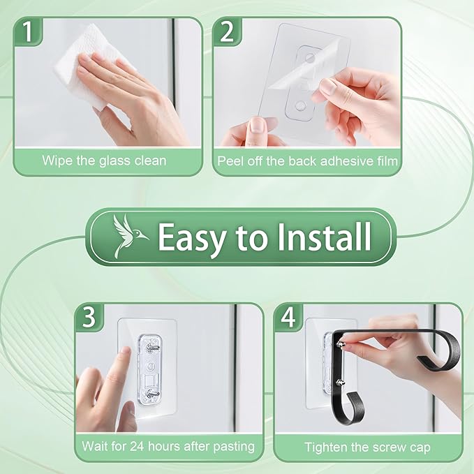 - Quality of Hummingbird Feed Hook: Crafted from high-quality solid metal with an anti-rust coating, and fixed with a nut on a strong non-marking adhesive to prevent falling off, ensuring long-term use. Suitable for various smooth surfaces like glass, windows, mirrors, shower walls, tiles, etc., making it perfect for your built in bird window or one way bird feeders for window.