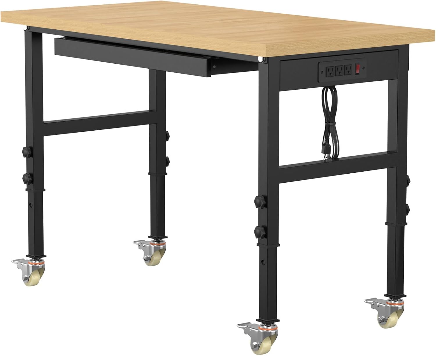 48" Adjustable Workbench,Heavy-Duty Work Table,3000 LBS Load Capacity Particleboard Hardwood Workstation Outlets with Power Strips, Drawers and Wheels,for Workshop, Garage