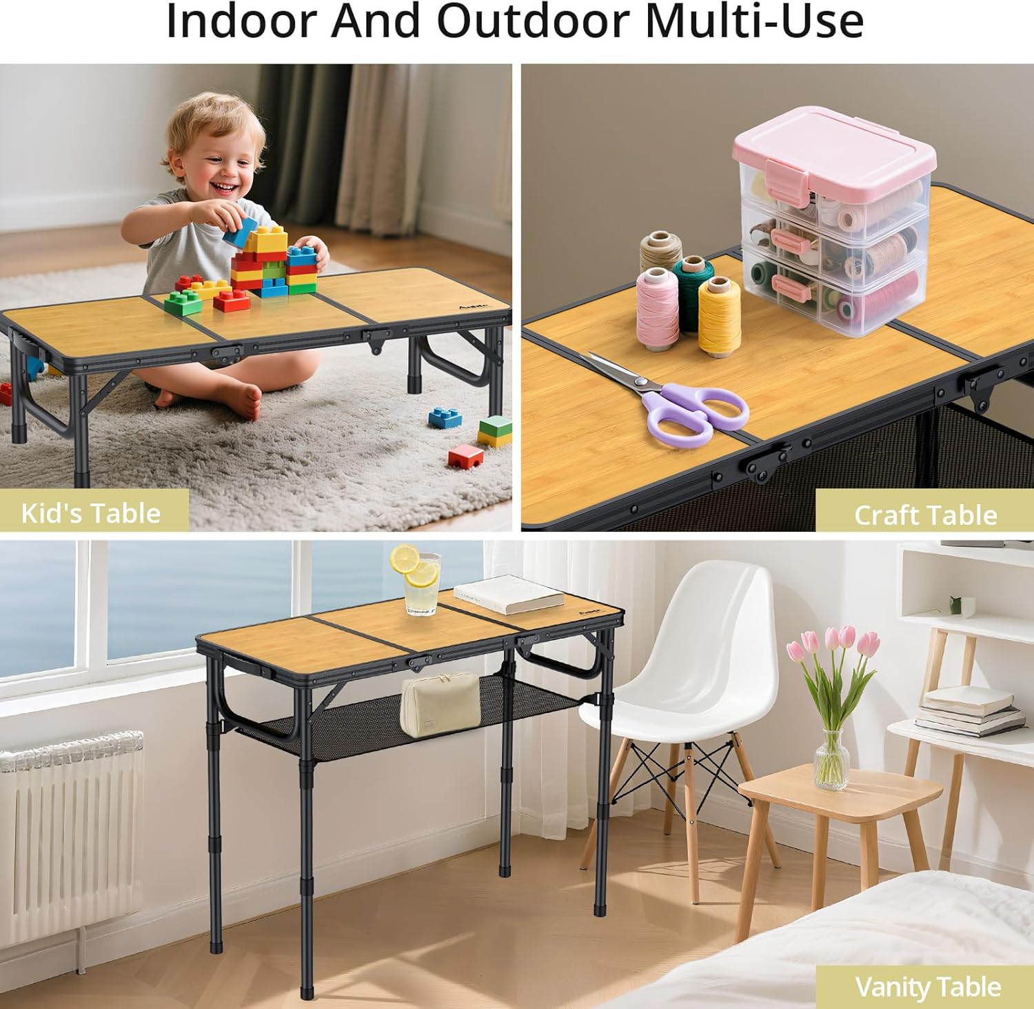 - Multifunctional Table for Various Occasions: This 3ft folding table is perfect for outdoor and indoor use. It can be used as BBQ grill side table, picnic table, card games table, fishing table, tailgate table, serving table for dining, working and study table for adult and kids