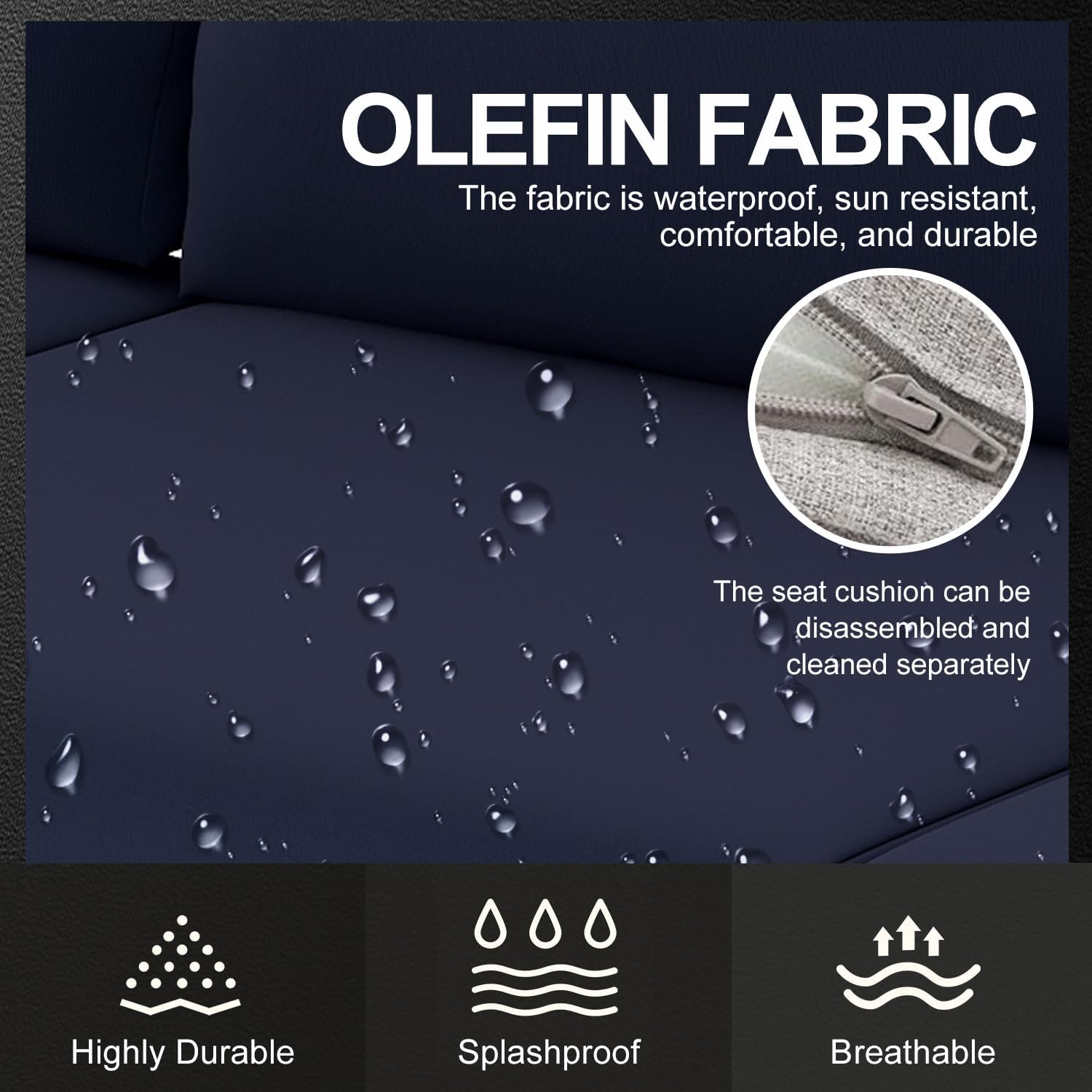 - 【Premium Olefin Fabric Cushions】 Designed for superior comfort, the cushions feature high-quality Olefin fabric that is soft, breathable, and moisture-resistant. Its fade-proof and stain-resistant properties make maintenance effortless, ensuring lasting beauty and comfort in your outdoor space.