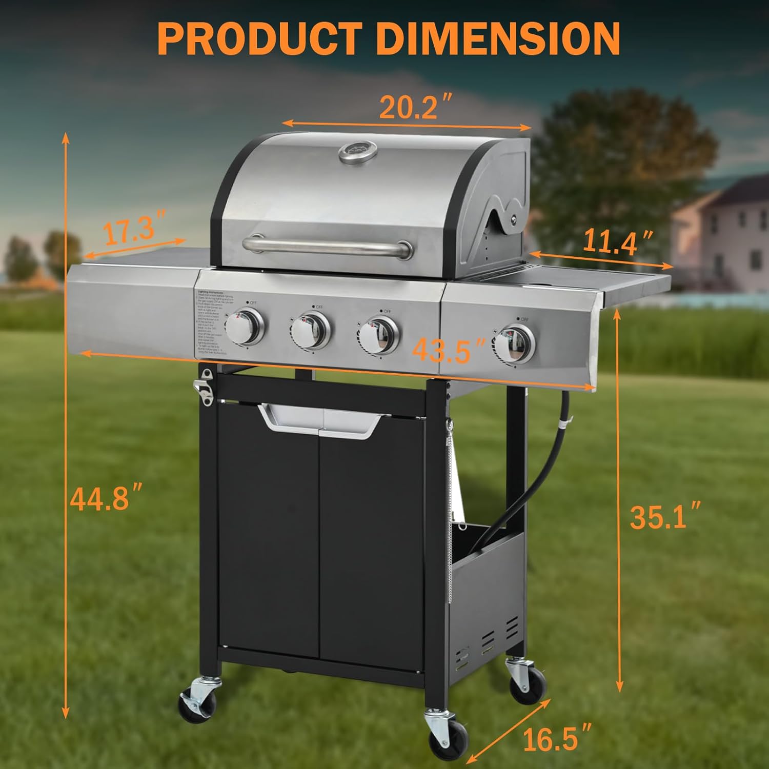 3-Burner Propane Gas Grill with Side Burner, 40,500 BTU Stainless Steel BBQ - Easy Assembly & Grease Management for Patio, Backyard, Camping (3+1Burner No Cover)
