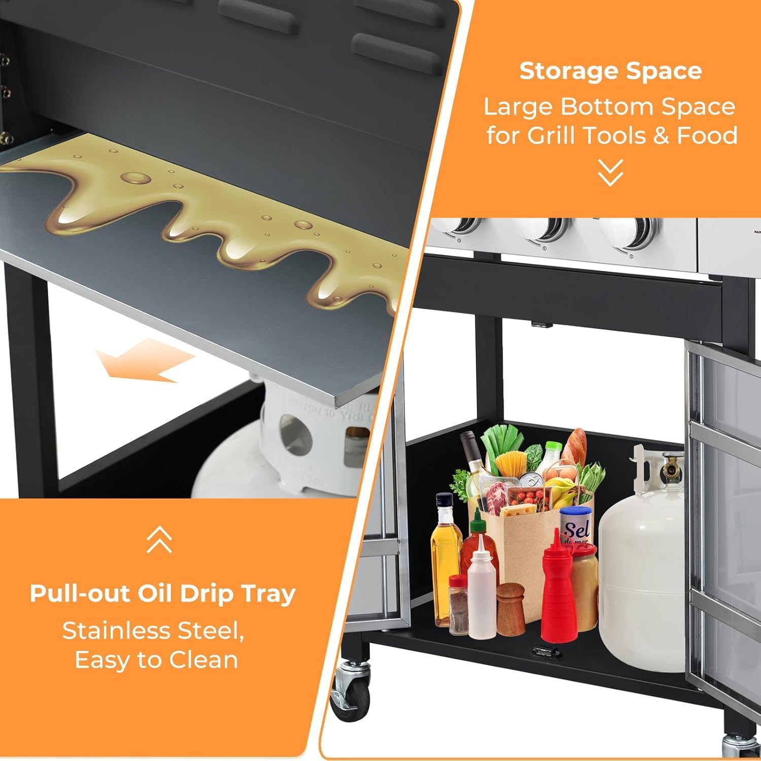 - 【Sturdy Construction】The firebox is made of steel with the high-temperature resistant powder coating, ensuring it can withstand up to 550°C for years of outdoor use. This rugged design ensures the natural gas grill is built to last