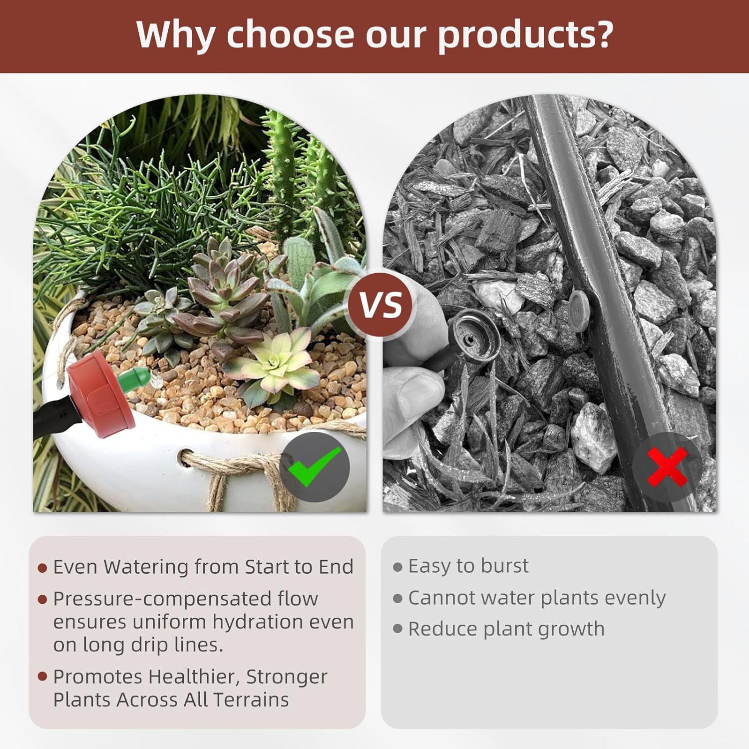 - Built to Last: Our 0.25 GPH Pressure Compensating Spot Watering Drippers/Emitters are made from premium UV-resistant plastic to withstand heat, sun, and outdoor weather. Designed for year-round performance, it won't crack, age or leak - ensuring reliable drip irrigation every season.