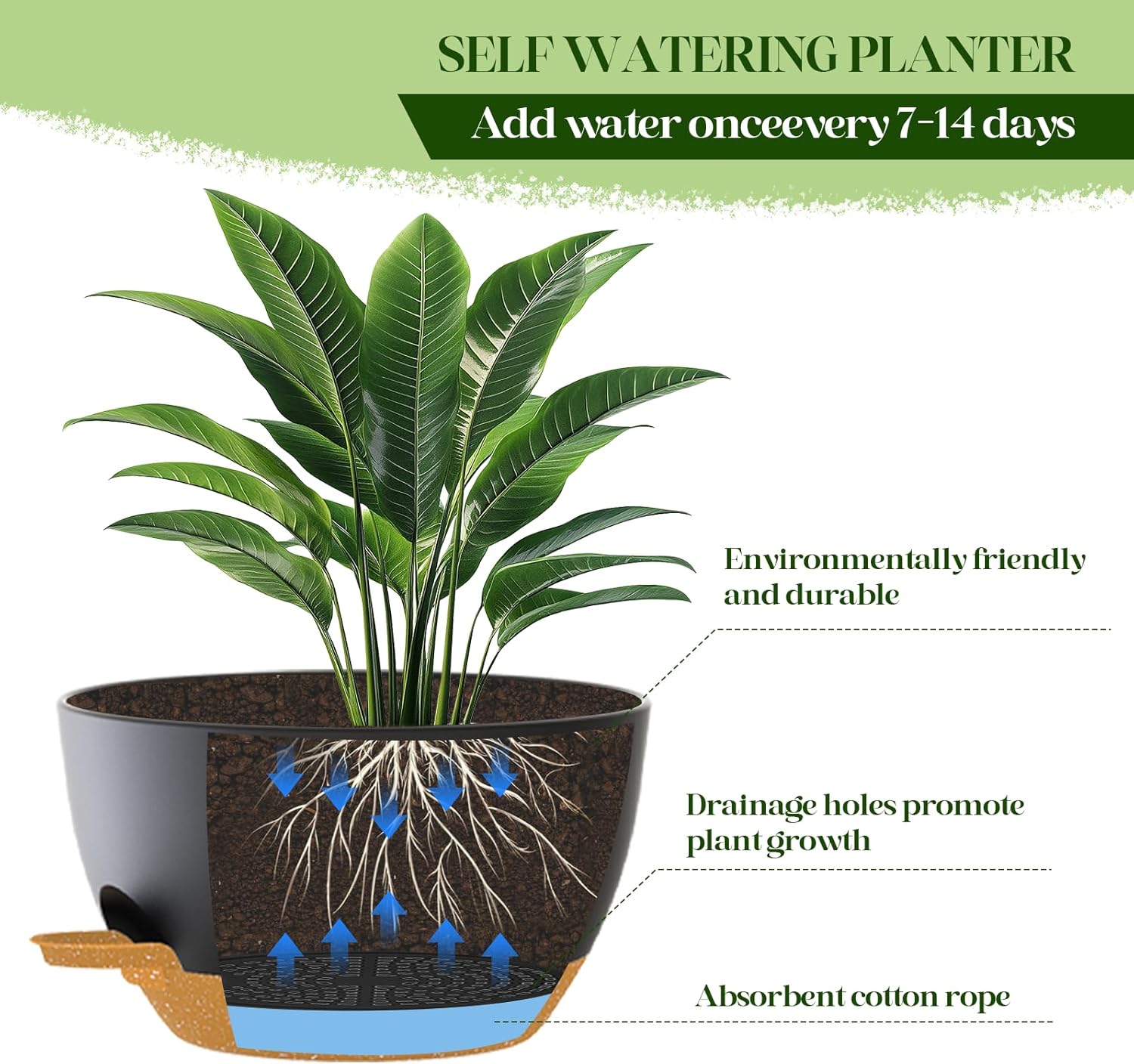 - ✅ 2 Large Self-Watering Planters: Double the value! Includes two 10-inch wide plastic hanging planters with built-in self-watering reservoirs to reduce the need for frequent watering and keep plants healthier.