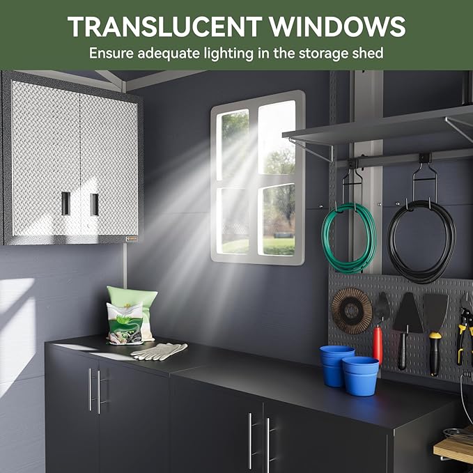- Space Expansion Solution :provides three-dimensional storage space, which can be categorized to store gardening tools, camping equipment, seasonal decorations and so on. Specially designed pet resting area and garbage cans, realizing modular extension of yard functions.
