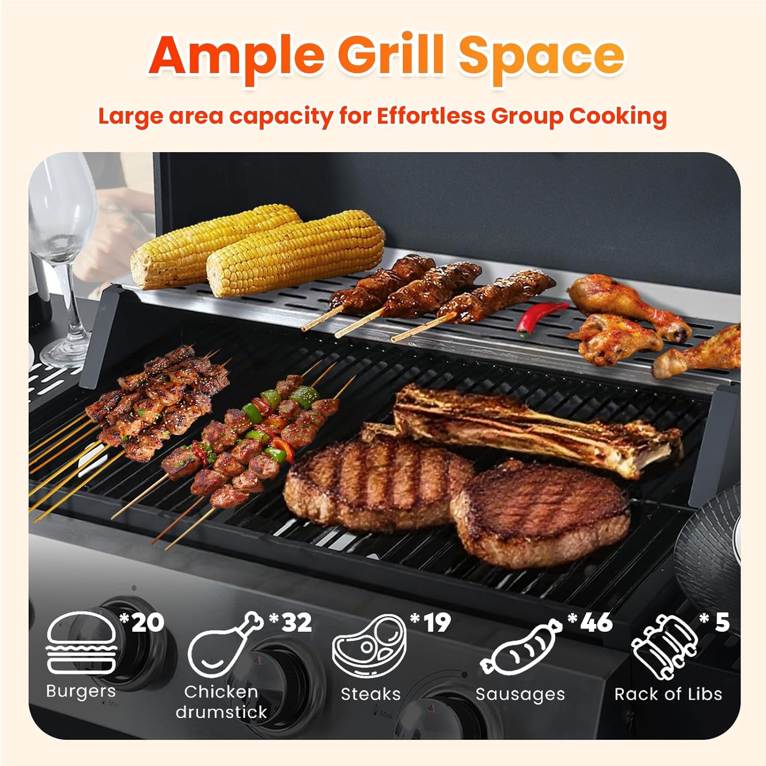 - 🏡 Versatile for Any Outdoor Setting - Perfectly suited for patios, balconies, gardens, or backyards, this propane gas grill brings versatility to your outdoor cooking game. Whether it’s a summer barbecue or a fall cookout, enjoy delicious meals with friends and family all year round in any outdoor space.