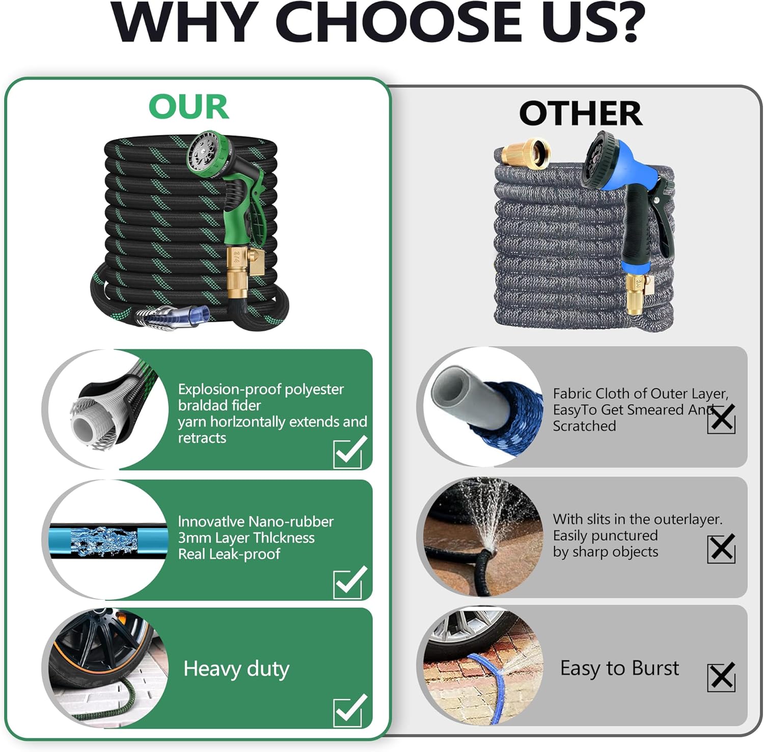 - 2025 UPGRADED GARDEN HOSE: This 200 ft Garden Hose is made from the highest quality materials, extremely functional, lightweight and flexible, durable. The hose will never kink, twist, leak, burst or get tangled up while in use