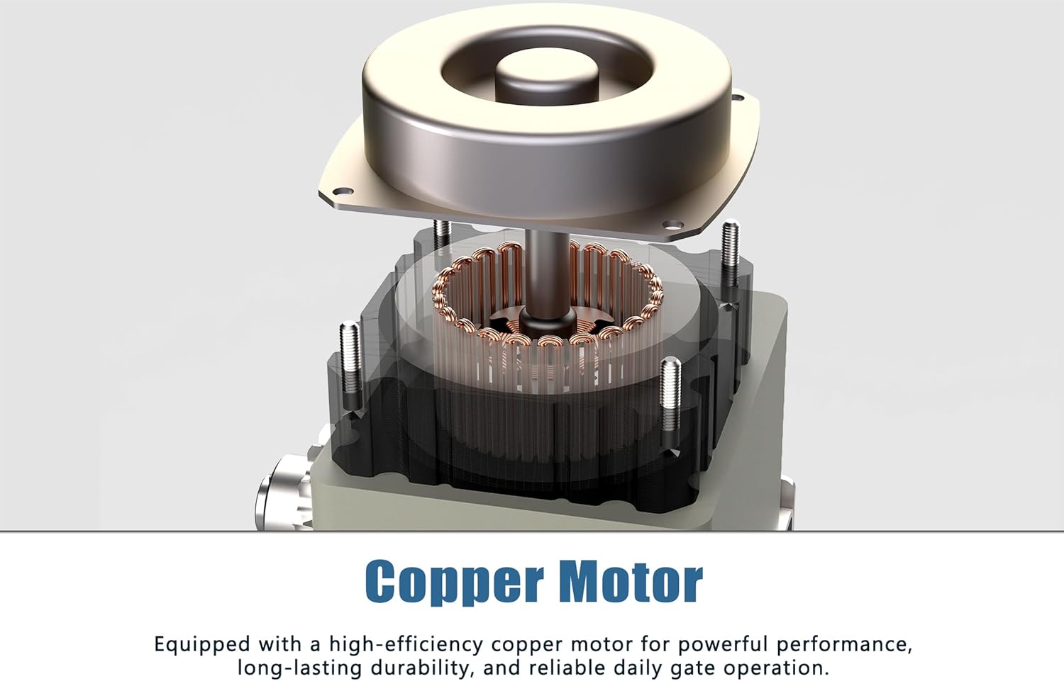 - ⚙️ Compact & Powerful Chain Drive — 130W motor powers sliding gates up to 1100lb with quiet and smooth performance. Comes with 16.4ft heavy-duty chain for easy installation and reliable operation.
