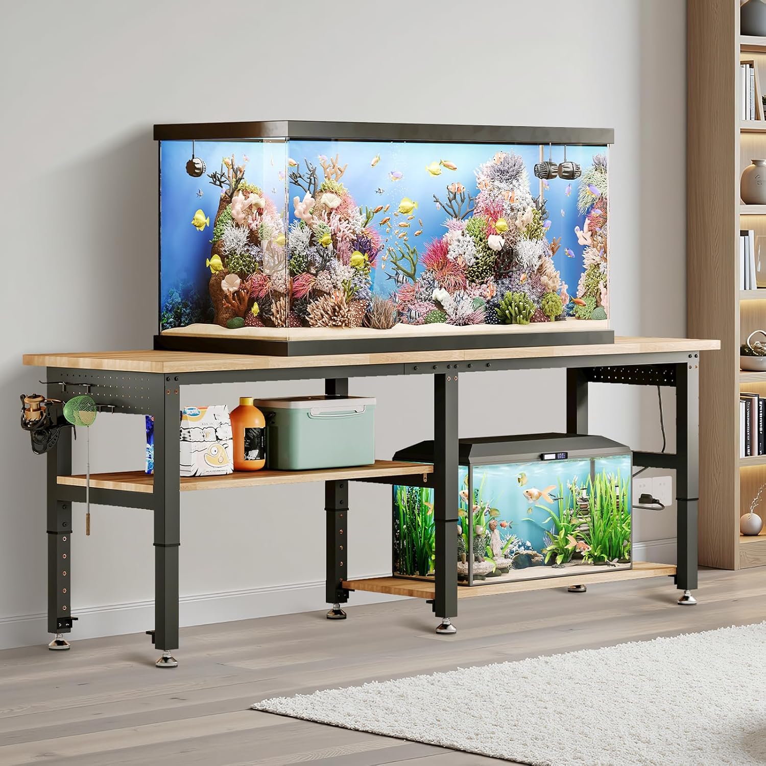 - 【Max 2000lbs Capacity & Solid Wood Top】Built with an industrial steel frame and 1.2" thick solid rubber wood top, this heavy duty workbench supports up to 2000 lbs evenly distributed—ideal for shop, garage, or office.