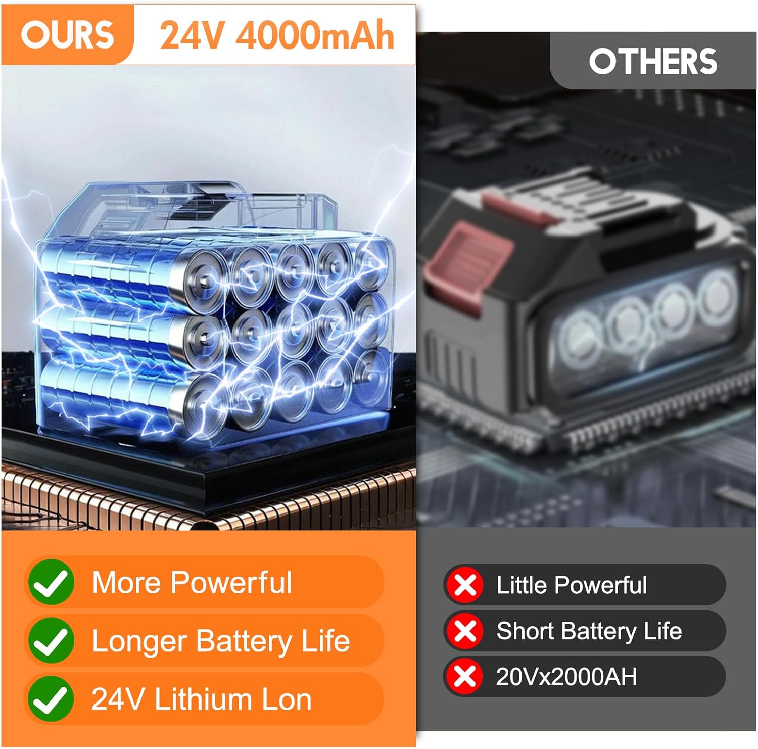 - Double Battery for Extended Runtime: Includes two 4.0Ah batteries for 40–60 minutes of continuous cutting (70–90 mins no-load). Swap batteries for unlimited runtime—perfect for large yards. No cords, no gas, just eco-friendly power