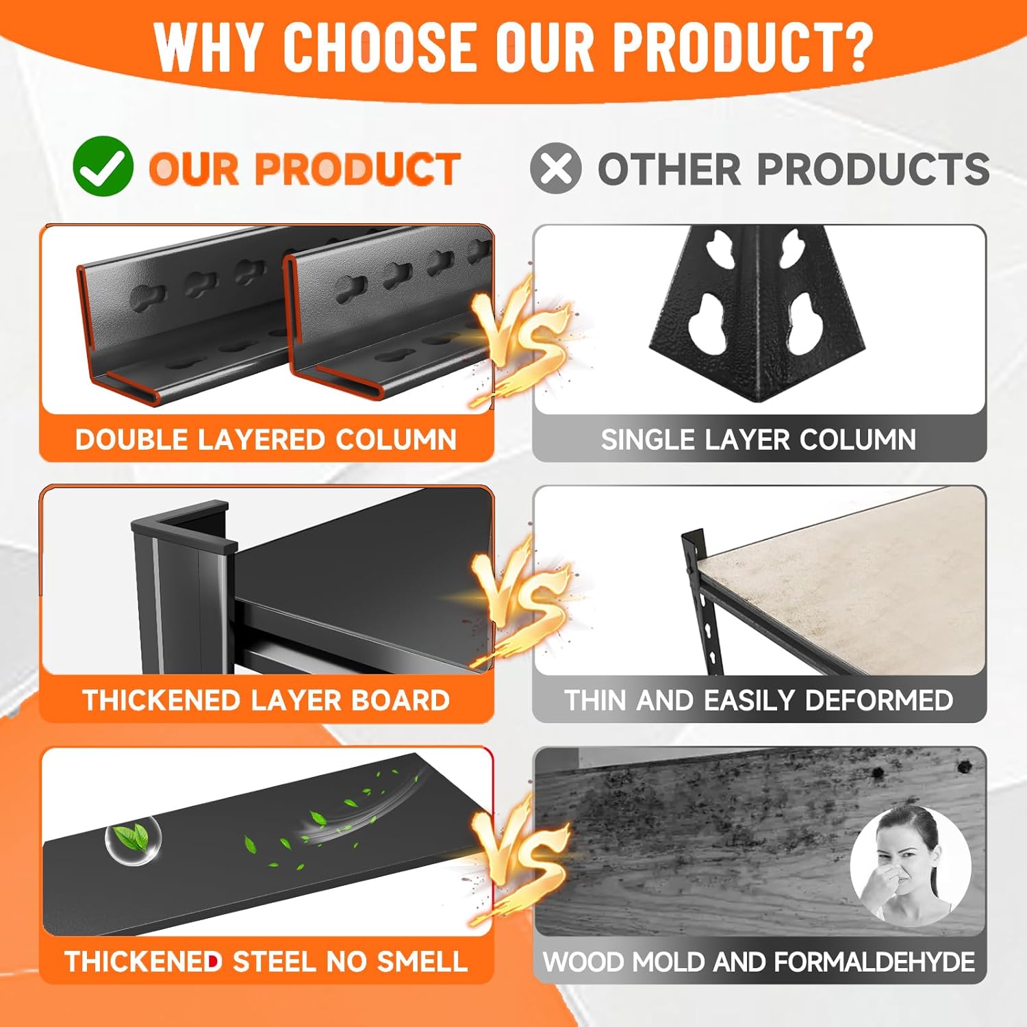- 【Quality Assurance and Professional Support】 Our professional team provides 24/7 online service. Every step from production to delivery undergoes rigorous inspections and passes three distinct quality checks. The reinforced packaging with corner protectors safeguards your metal garage storage shelving unit during transitIf. you have any problems after receiving the goods, please contact us and we will handle every issue encountered by the customer properly.