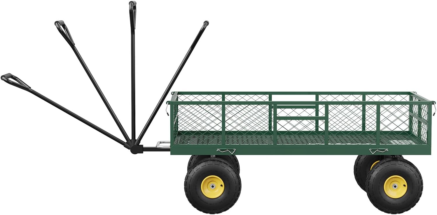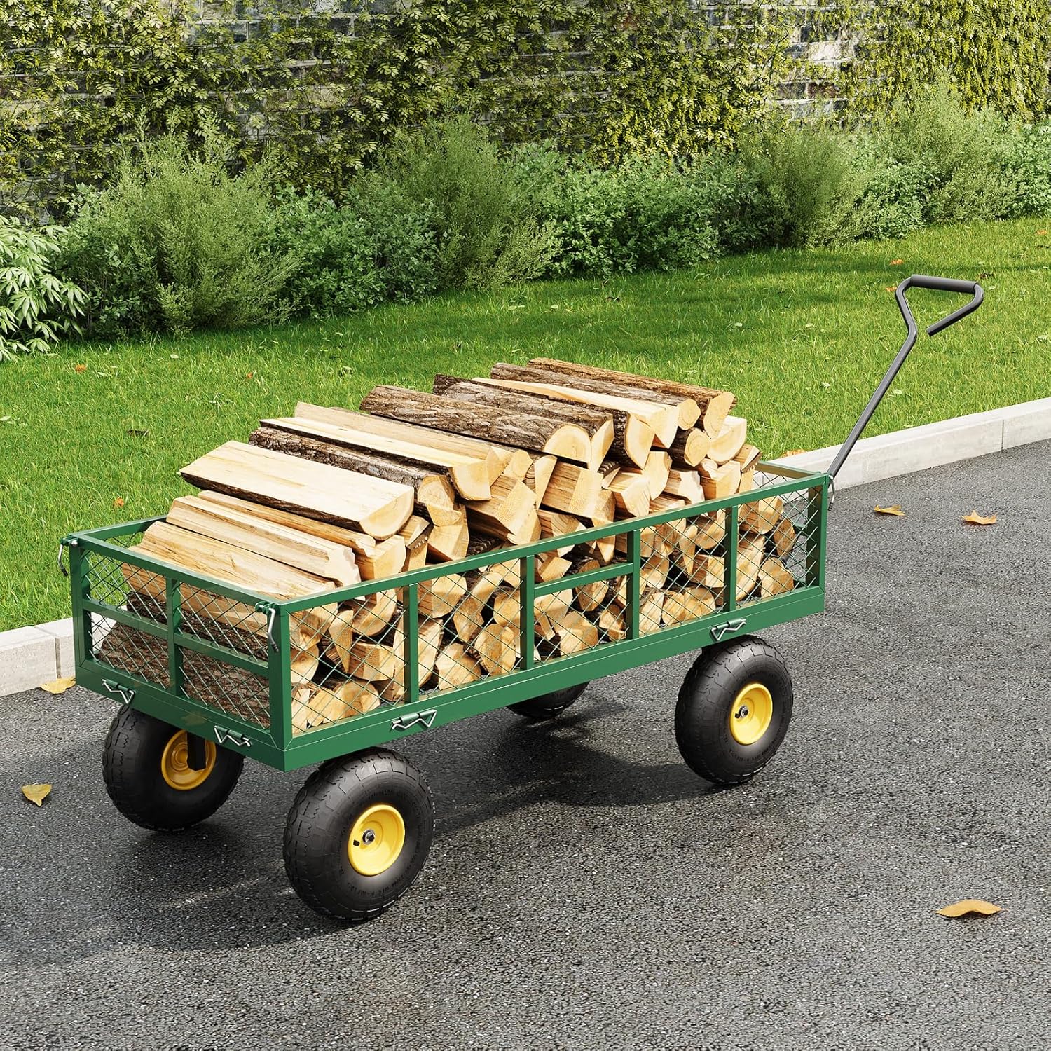 - Convertible Flatbed Versatility: Four removable side panels let you easily switch between a standard yard cart and a flatbed for oversized items. Keep side panels on to prevent stuff from falling, or remove them for carrying heavy loads with a low center of balance